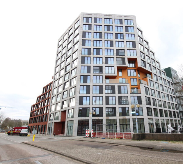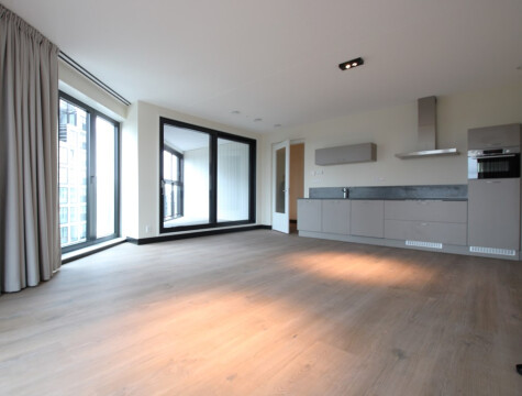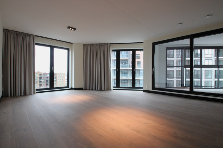 5e verdieping: entree, hal, wc, grote woonkamer hoge raampartijen en open keuken. Vanuit de woonkamer kijk je vrij uit richting Schiphol. 2 slaapkamers, ruime badkamer met inloopdouche, wastafelmeubel en wc. Technische ruimte met wasmachine en droger. Vanuit de woonkamer toegang tot de ruime loggia op het zuidwesten.