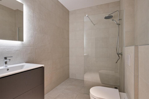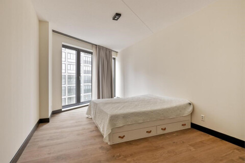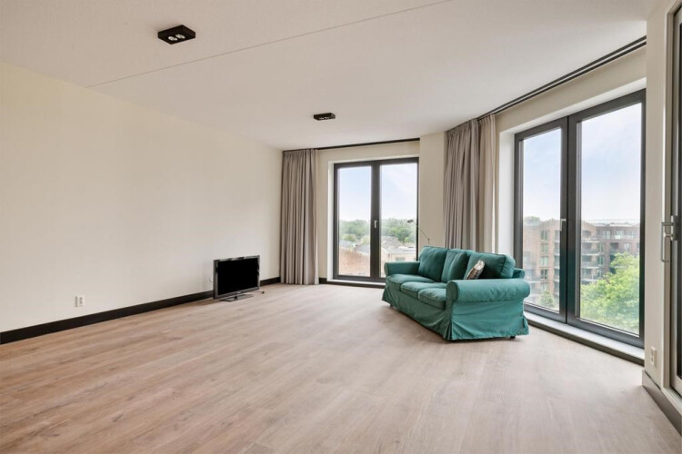 5e verdieping: entree, hal, wc, grote woonkamer hoge raampartijen en open keuken. Vanuit de woonkamer kijk je vrij uit richting Schiphol. 2 slaapkamers, ruime badkamer met inloopdouche, wastafelmeubel en wc. Technische ruimte met wasmachine en droger. Vanuit de woonkamer toegang tot de ruime loggia op het zuidwesten.