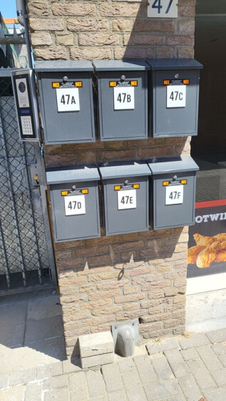 Voor de ingang licht een groot terras met gemeenschappelijk gebruik.