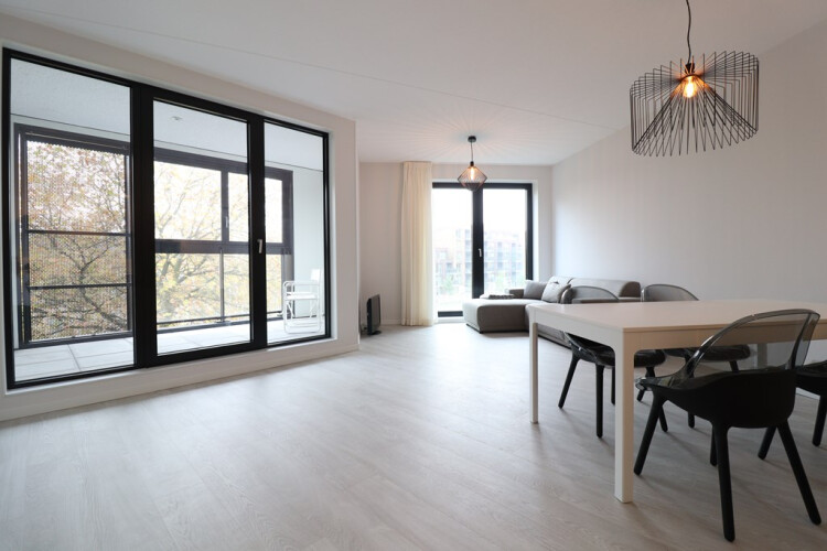 This nice newly built building in the popular Hyde Park area, in Hoofddorp offers a bright 3 room apartment with great balcony. This apartment is equipped with all the specs you desire and measures about 68m2. At the garage we offer a private parking spot for €150 and a private storage box is included. The Hoofddorp train station is only minutes walking away. Schiphol Airport is only 4 mniutes by train (train goes every 15 minutes) and Amsterdam Zuid (Zuidas), is only 11 minutes by train.