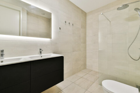 De afwerking van de open keuken is van hoog niveau en voorzien van hoogwaardige Bosch-inbouwapparatuur, waardoor koken een waar genot wordt. De moderne badkamer en de tweede toilet zijn uitgerust met modern sanitair, vloer- en wandtegels, wat een gevoel van stijl en klasse toevoegt aan de ruimtes. De hoge binnendeuren en kozijnen reiken tot aan het hoge plafond en creëren een gevoel van ruimte en elegantie.